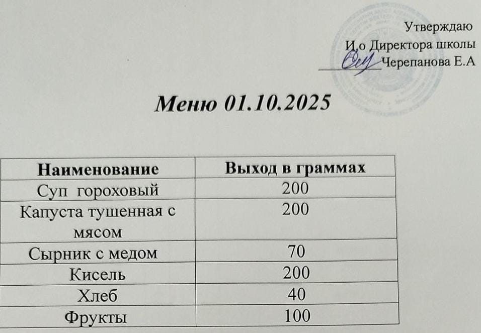 01.10.2025г. Комплексное бесплатное питание