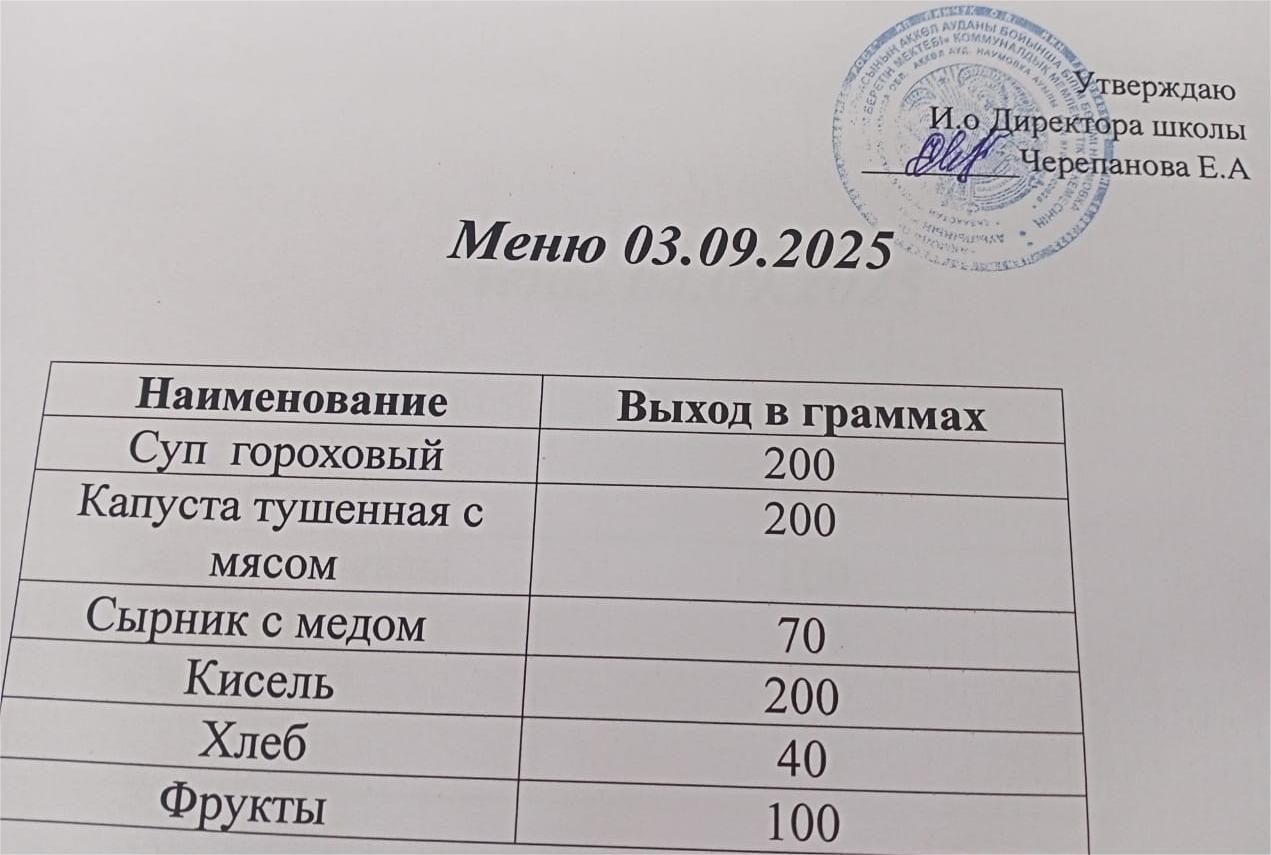 Меню на 03.09.2025г. Комплексное бесплатное питание