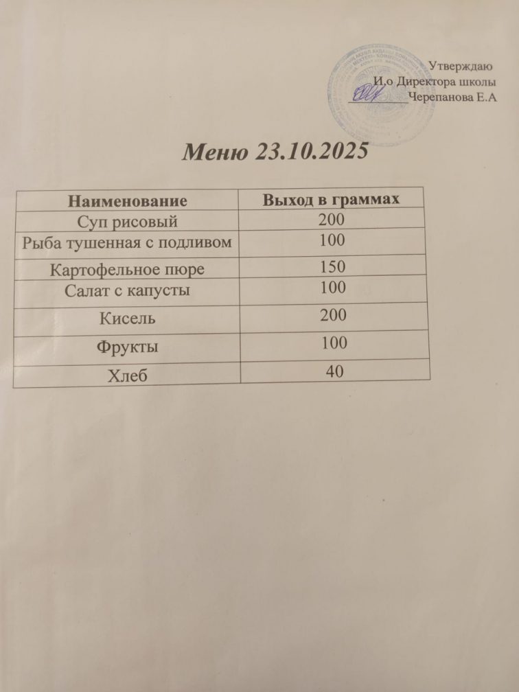 23.10.2025г. Комплексное бесплатное питание.