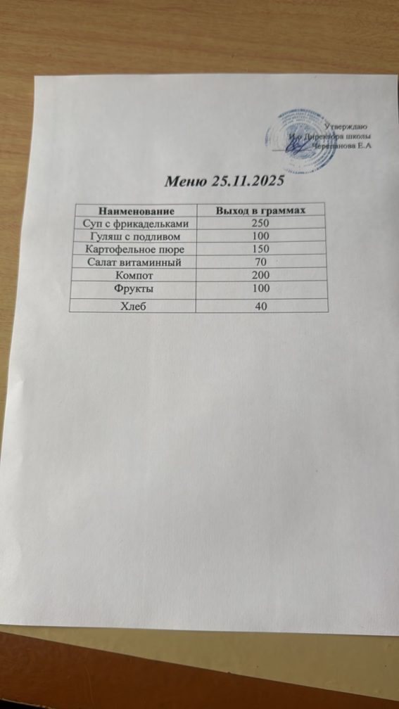 25.11.2025г Комплексное бесплатное питание