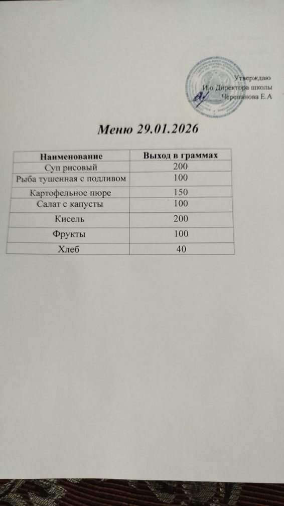 29.01.2026г. Комплексное бесплатное питание