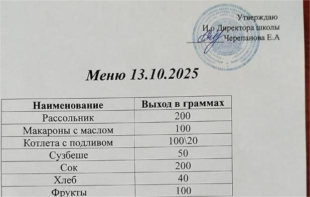 Меню на 13.10.2025г. Бесплатное комплексное питание
