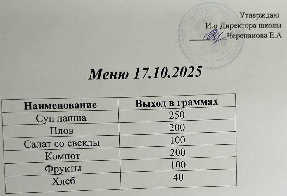 Меню на 17.10.2025г. Комплексное бесплатное питание